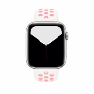Made from a custom-developed high-performance fluoroelastomer with compression-moulded perforations for breathability, the Light Pink/White Sport Band Active for Apple Watch is durable and strong, yet surprisingly soft. The smooth, dense material drapes elegantly across your wrist and feels comfortable next to your skin. An innovative pin-and-tuck closure ensures a clean fit.